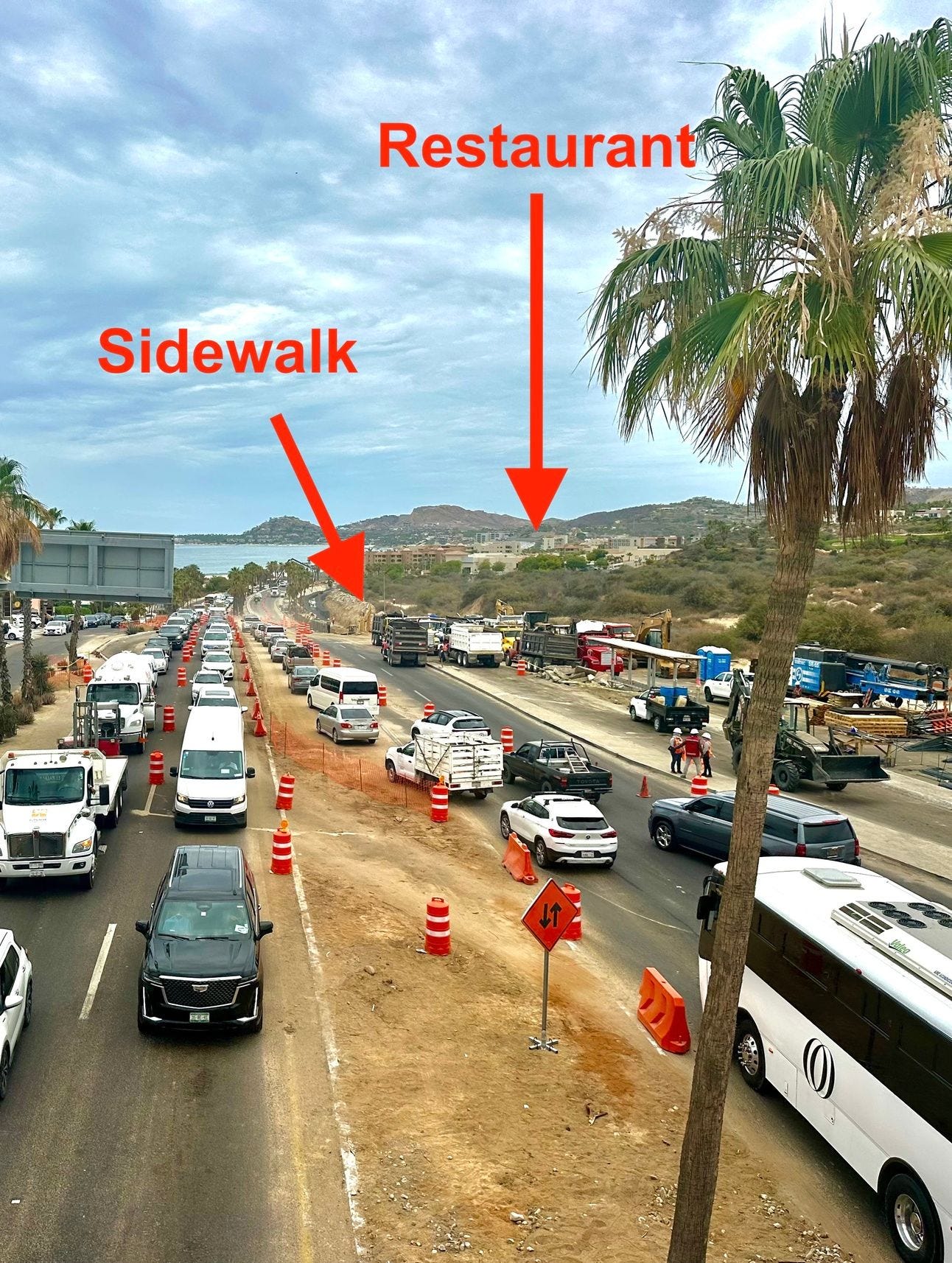 But it gets better. As luck would have it, just 45 minutes earlier, part of the road had literally collapsed. The whole area's a mess, and now the only way to get where I’m going is to walk alongside a highway—on a road that part of which had just recently collapsed.